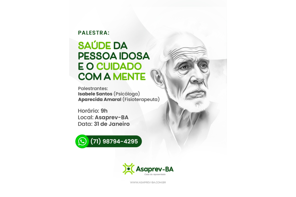 Fechando o Janeiro Branco a ASAPREV-BA promove palestra sobre “Saúde da Pessoa Idosa e o Cuidado com a Mente” com a psicóloga Isabel Santos e a fisioterapeuta, Aparecida Amaral.